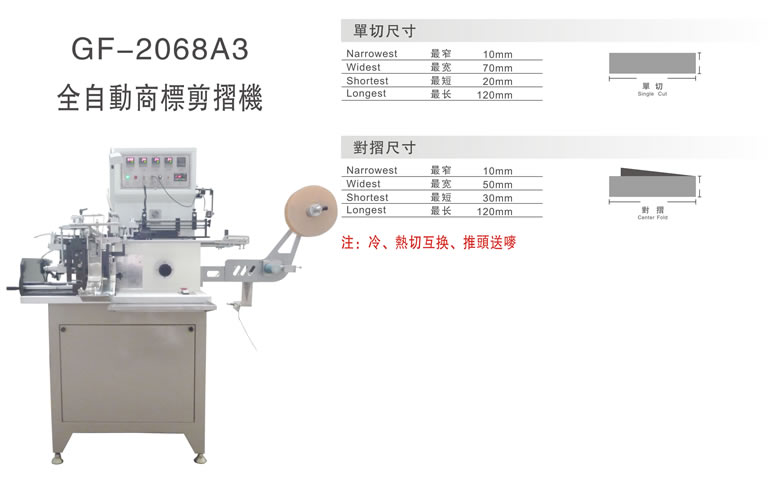 GF 2068A3 MÁY CẮT NHÃN GẤP XẾP HOÀN TOÀN TỰ ÐỘNGHệ máy cắt nhãn gấp xếp nóng lạnh , gồm chức nãng tay đẩy nhãn dễ sử dụng , tính nãng ưu việt , kích thước sau khi gấp đôi đạt độ dài 120mm .